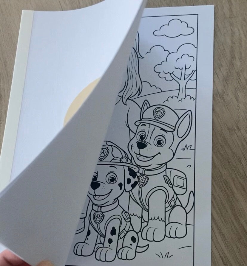 Welcoming, a book of personalised colouring pages. Each page is themed to incorporate your child/ren and their favourite characters or interests.